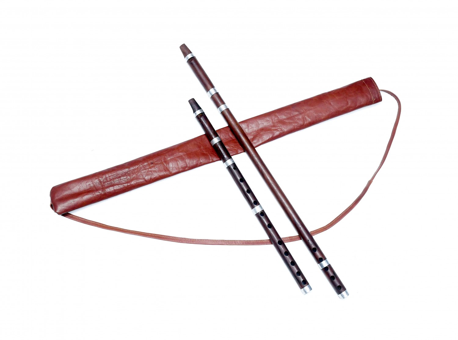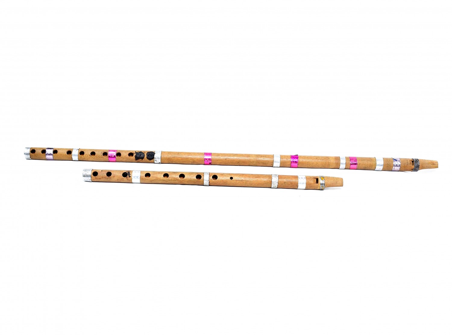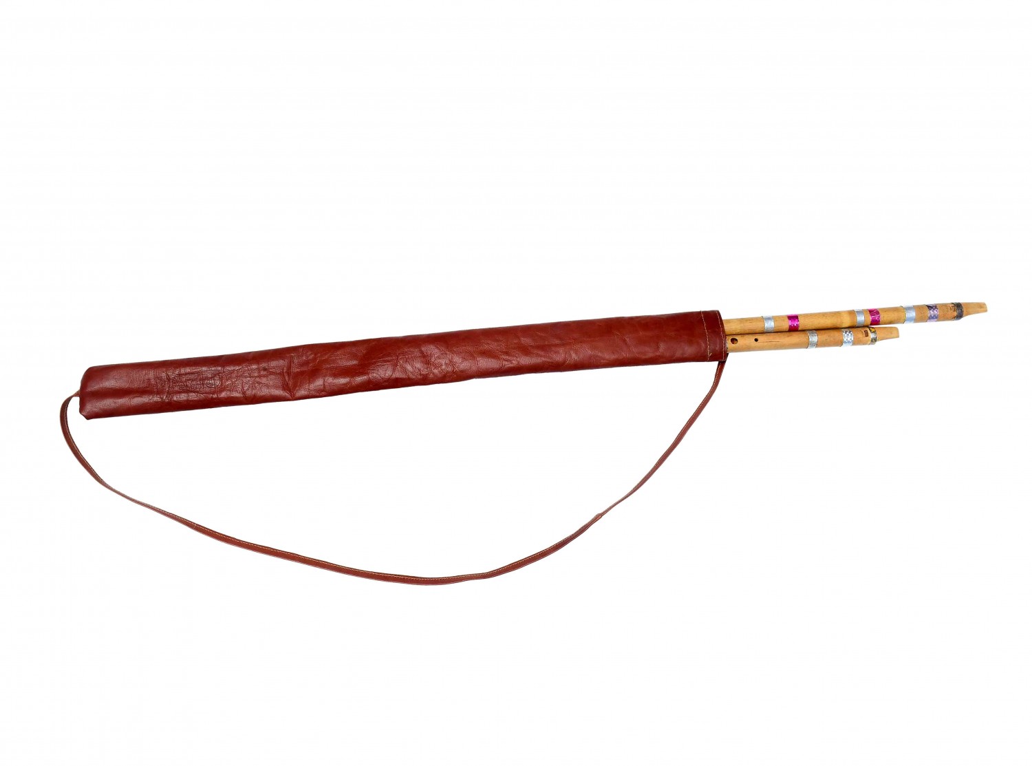 joined beak flutes, one for melody, the second for drone. It is wooden