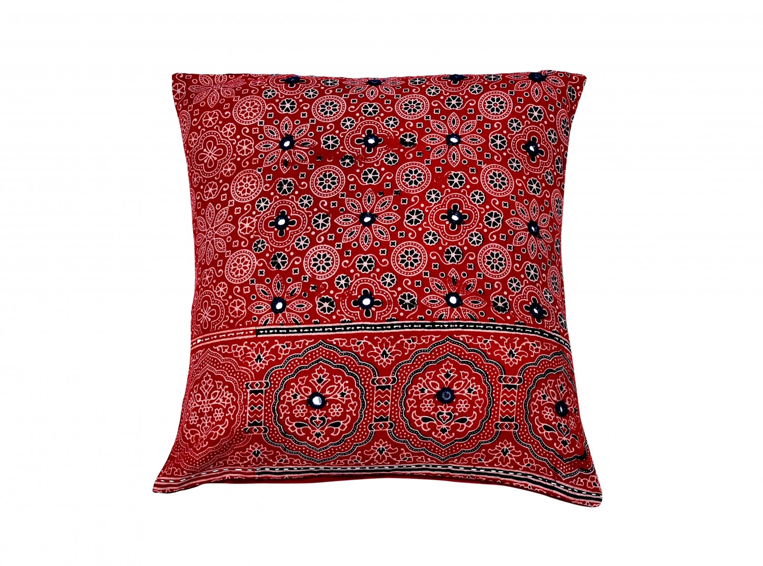 Barmer print mirror work, this cotton cushion cover lends a coveted graphic quality to carefully considered Décor.