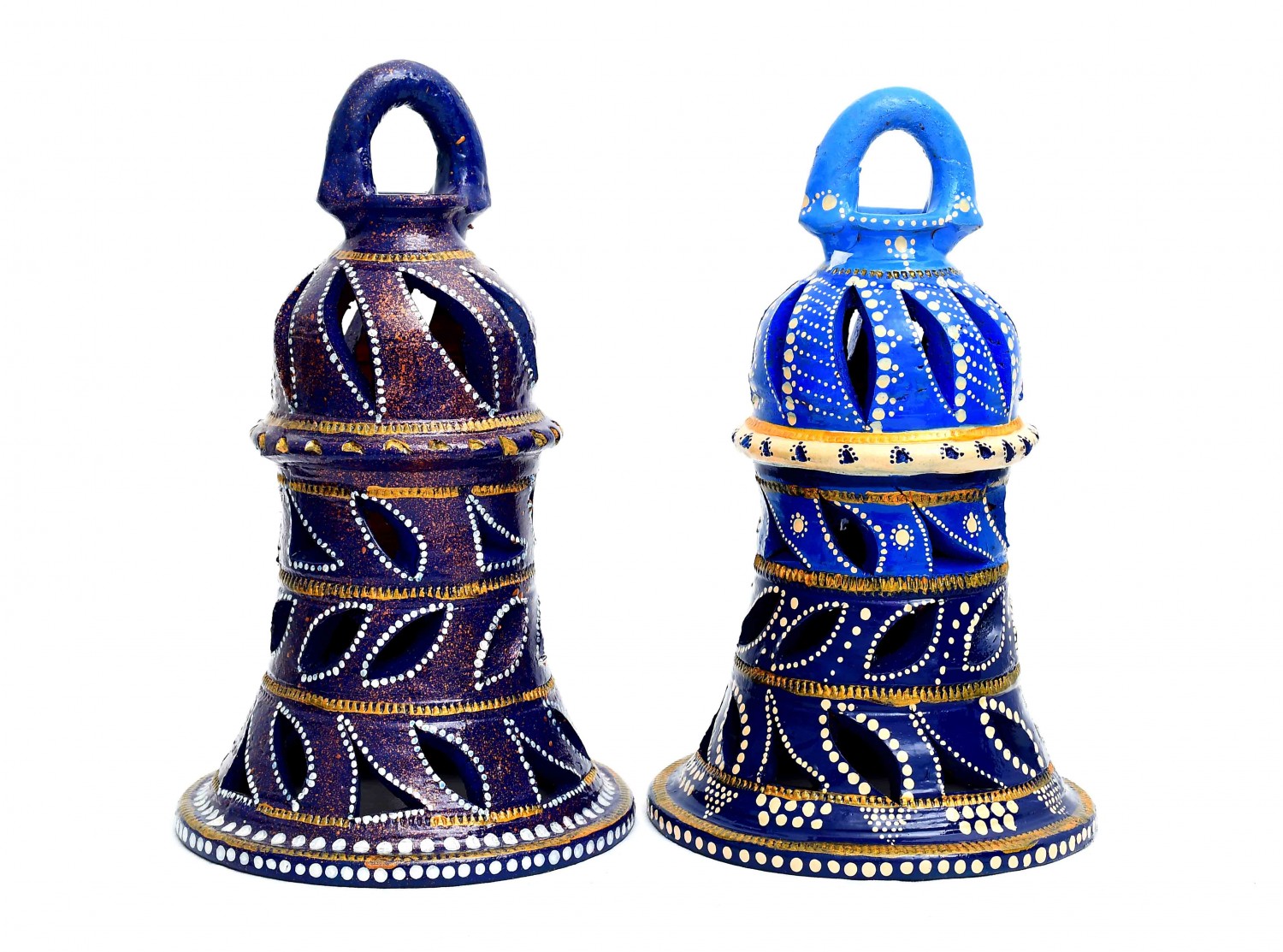 The clay has been used to make the bell lantern, and it is handmade, after the bell lantern is made it is attracted by using acrylic dyes. The bell lantern takes four to five days to make. Use it in your home for decoration.