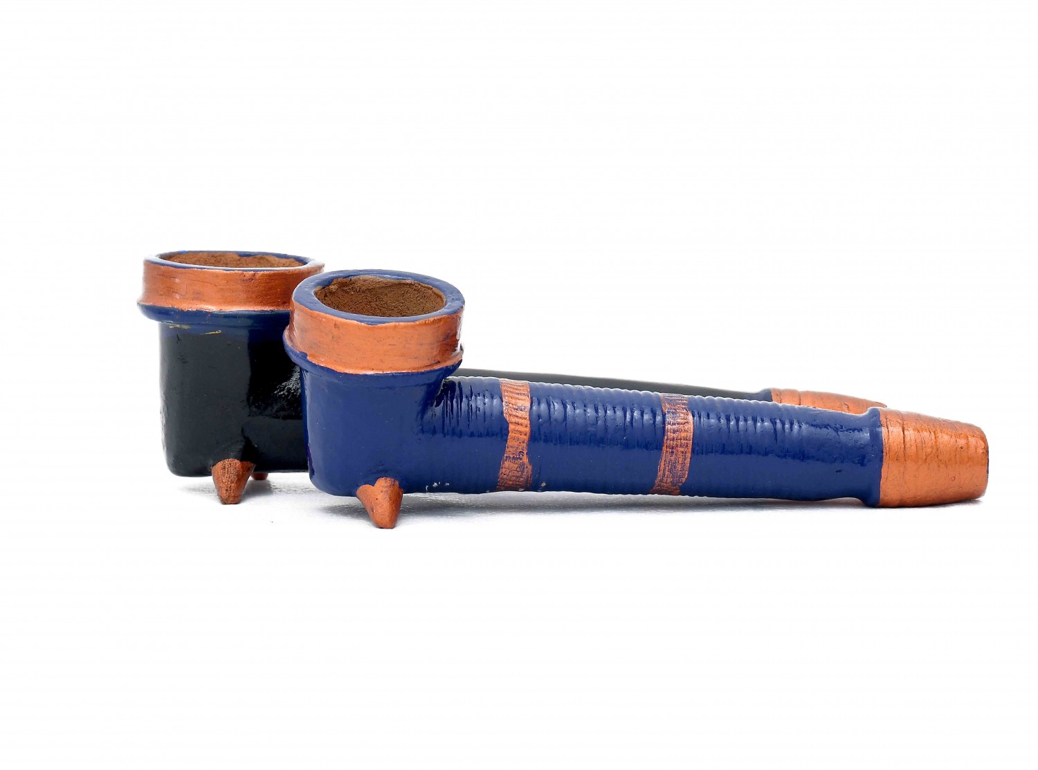 The clay has been used to make the chillum, and it is handmade, after the chillum is made it is attracted by using acrylic dyes. The chillum takes three to four days to make.