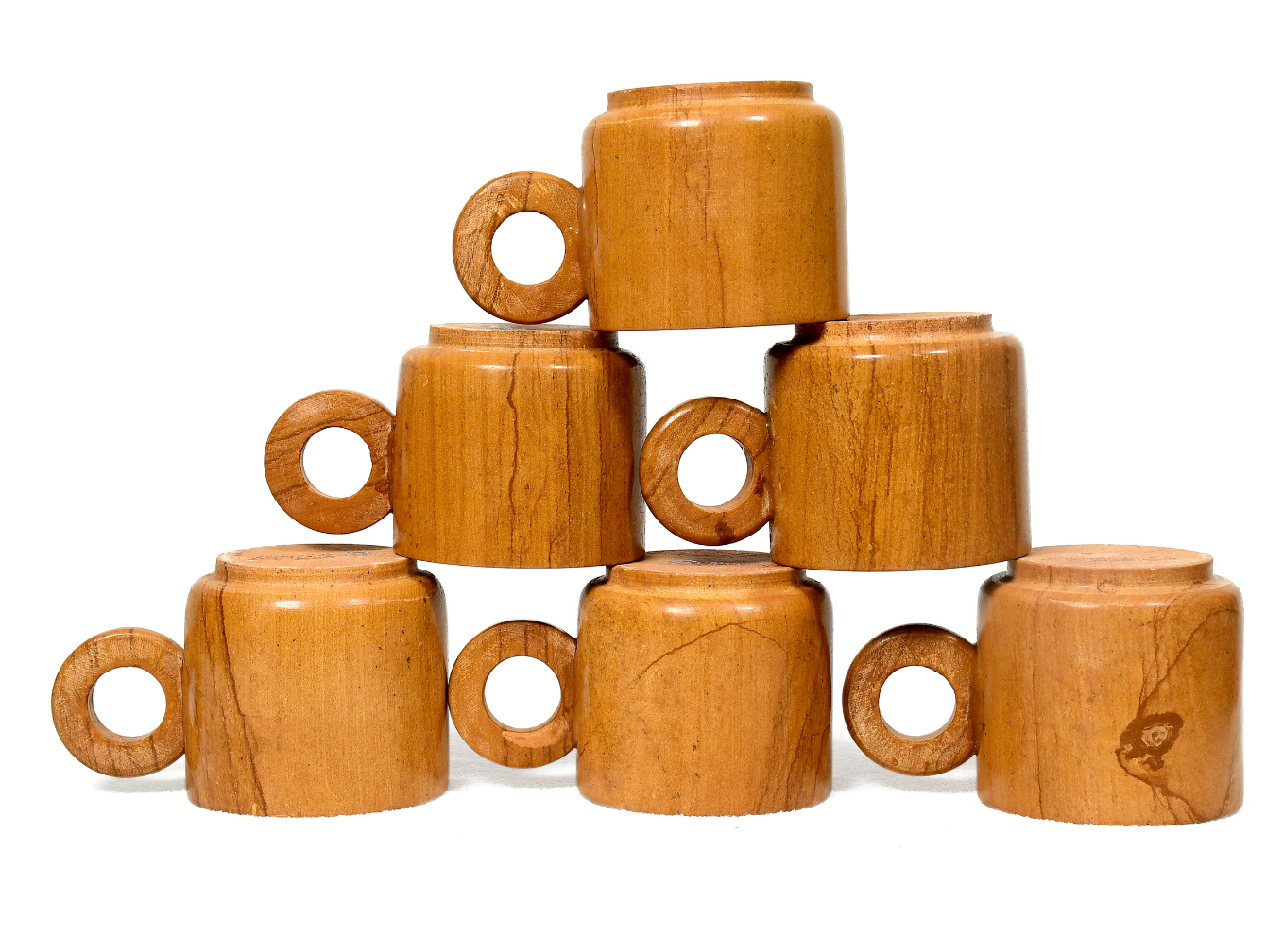 We are telling you about the famous stone cup of a tea set in Jaisalmer. Jaisalmer stone is used to make different types of utensils by machines or hands and utensils made of this stone are very beautiful like coffee cup sets, it is useful in making your kitchen special.