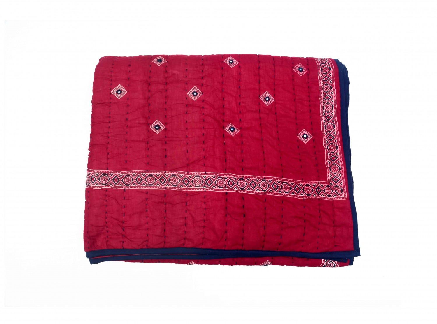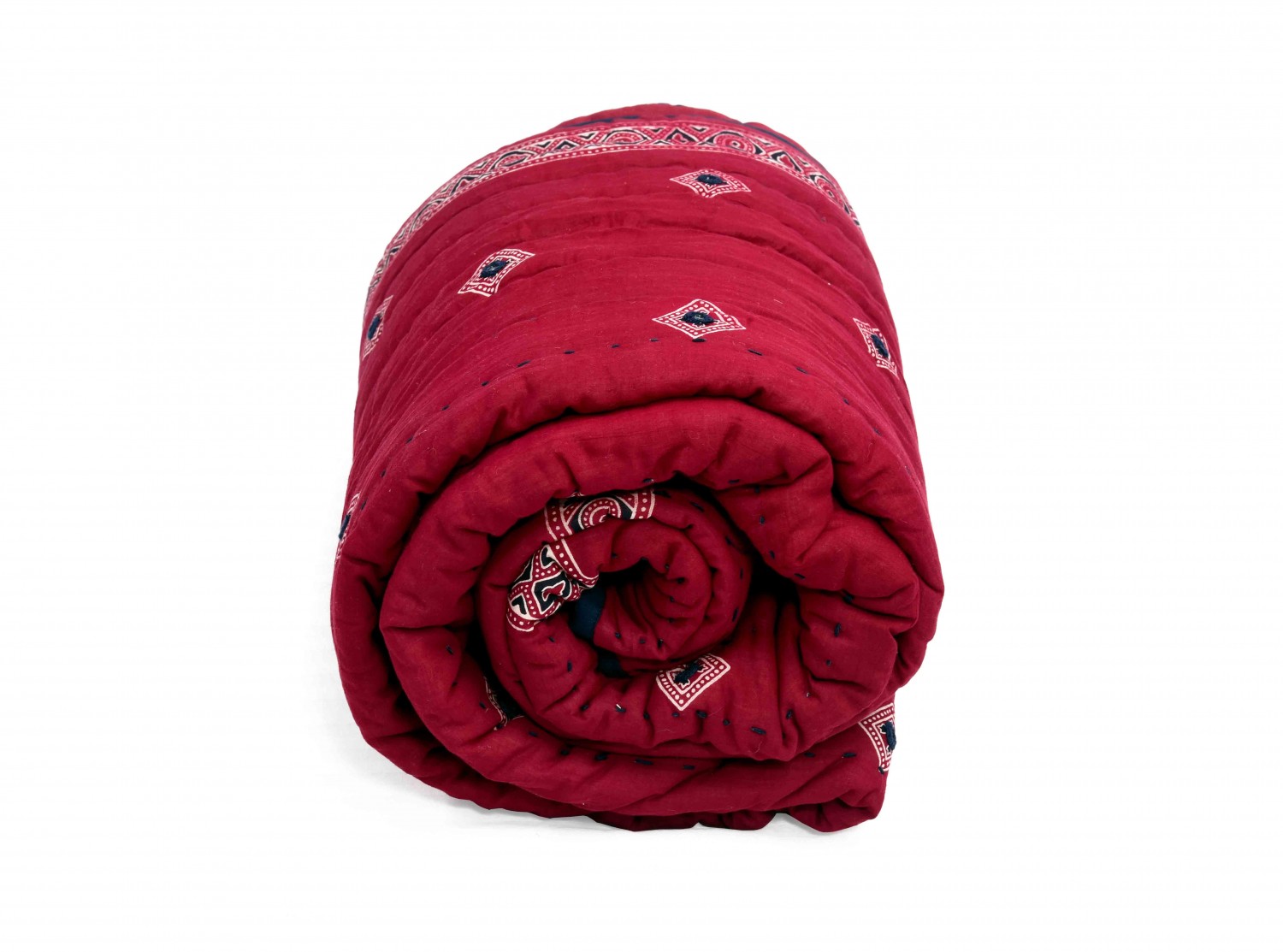 Curated with exquisite craftsmanship, this cotton quilt is ideal for the seasons of autumn, winter, and early spring. Adorned with Bagru prints with paisley motifs on the spread, it is framed with a deep-hued border. Lay it out to remain snug and also to accentuate the decor of your room.