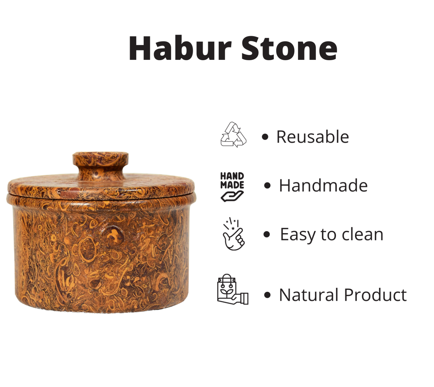 Habur Fossil Stone Bowl is one of its kind from the village 40 km away from Jaisalmer for that exact experience of our traditional values. Converts milk into yogurt without fermentation. How do we prepare yogurt at home? Do not initially fill the entire container at once. Gradually your quantity. Can increase. Its stunning texture reflects the good personality of your style. You can put ghee in this house.