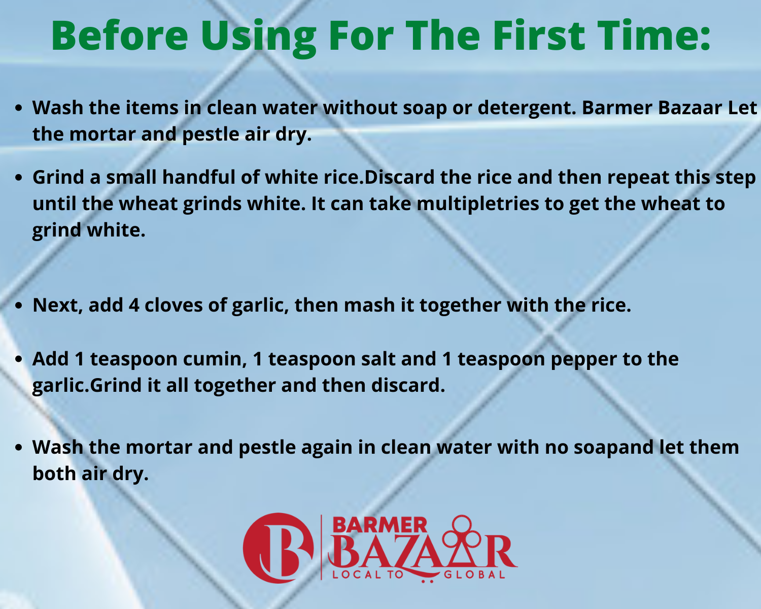 Barmer Bazaar Mortar and Pestle Set for Spices is made using pure stone that turns white when wet and remains