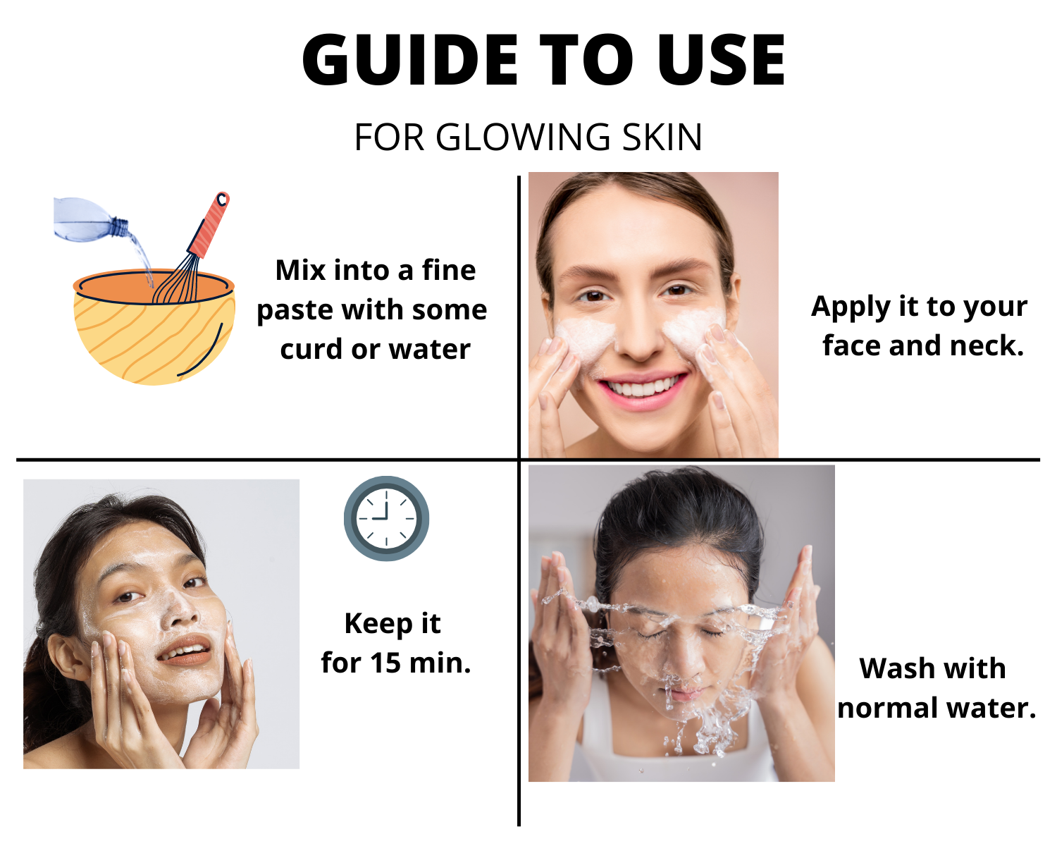 ingredients accordingly. Apply the paste on your skin and leave it on for 15-20