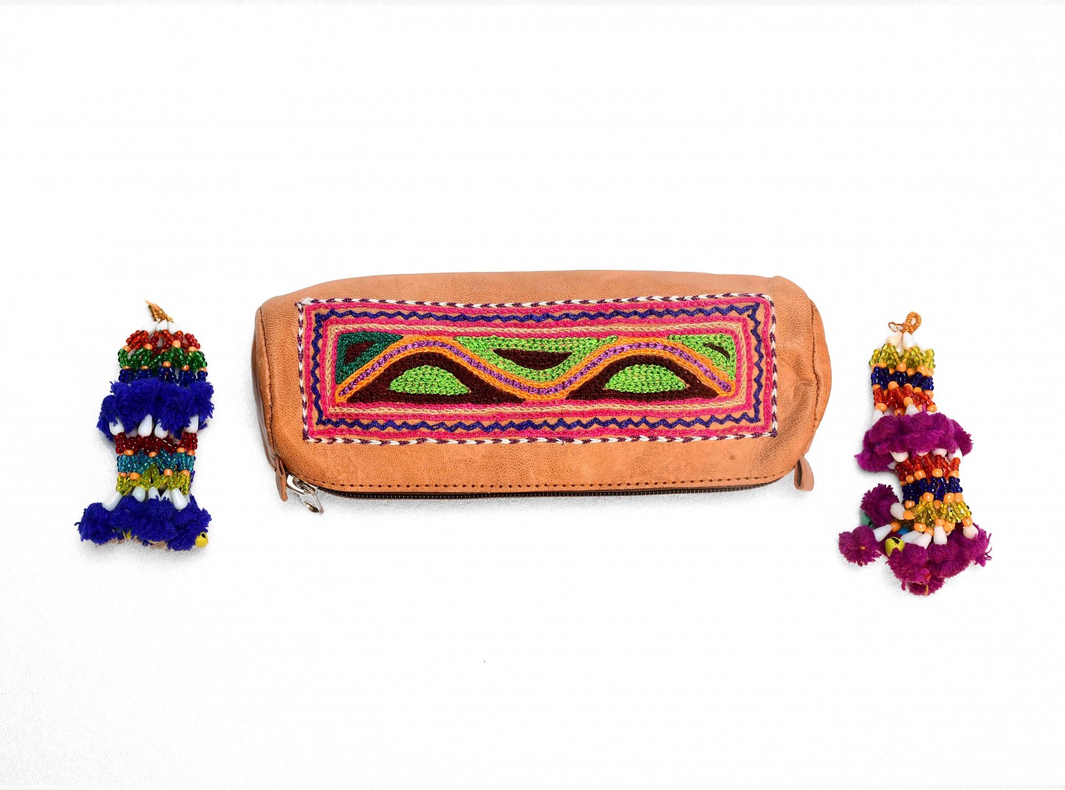 "This product of a spherical shape made of leather can be used by the students to keep their pen, pencil and color,