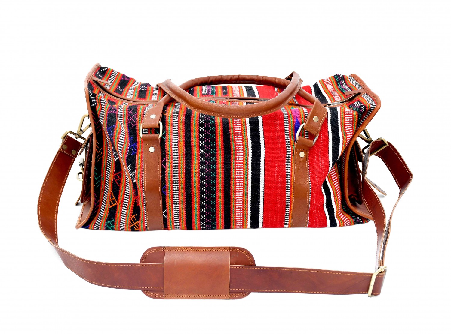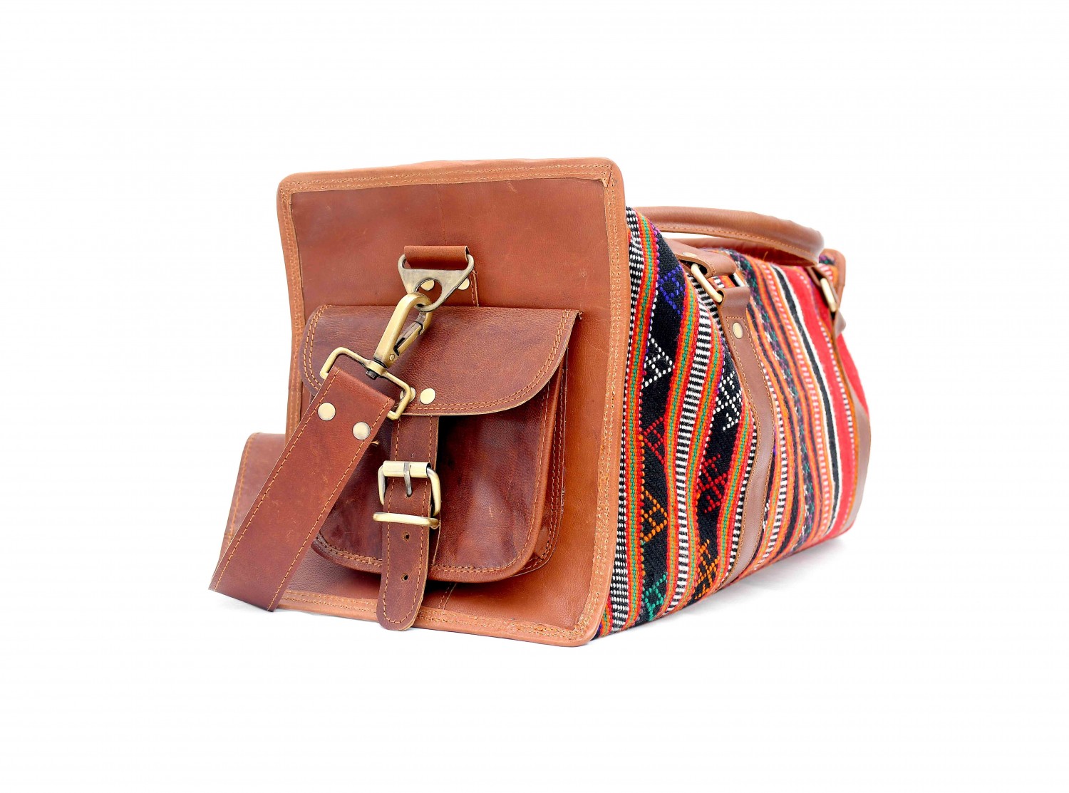 The premium quality duffle bag is ideal for 2-3 day trips made of strong and durable artificial hand made Pattu soles and leather.
