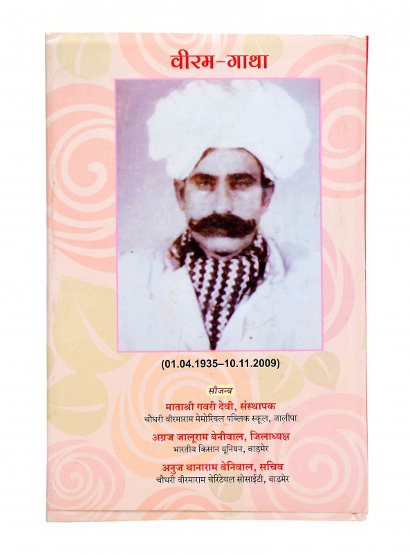 वीरम गाथा, इतिहास है एक ऐसे युग पुरुष का, जिसने अत्यन्त ही साधारण स्तर से उठकर सफलता के वो सोपान पार किए जो आम जन के लिए किसी सपने से कम नहीं थे। ग्रामीण आचल से प्रारम्भ यह गाथा गरीबों की रहनुमाई, दबंग के सामने दबगई, खुद की स्वाभिमानता से होते हुए सामाजिक, आर्थिक एवं राजनैतिक जाजमों पर समाज की अगुवाई तक, अपने धीरोदान नायक की लगन, कर्मठता एवं विवेकमय बुद्धि से जा पहुंची। समाज का नेतृत्व, तत्कालीन परिस्थितियों से मुकाबला, राजनीतिक पटल पर अपनी उपस्थिति और उन चीजों का प्रदर्शन, जो उन जैसे तबके के लोगों के लिए वर्जित प्राय थे, करना वाकयी गरीबों के रहबर, दोनों के दयाल, दमितो के नायक, किसानों के सम्बल, हमारे नायक वीरमाराम चौधरी के जीवन की संघर्ष गाथा है। स्थानीय स्तर का संघर्ष हो या भूमि अवाप्ति आदोलन, हर जगह अपनी अमिट छाप बेबाक व्यक्तित्व, दबंग आवाज एव रौबदार मूछों के जरिए आम व खास तक, छोड़कर अमर नायक बन गए, वीरम गाथा के नायक चौधरी वीरमाराम "मिस्री" |