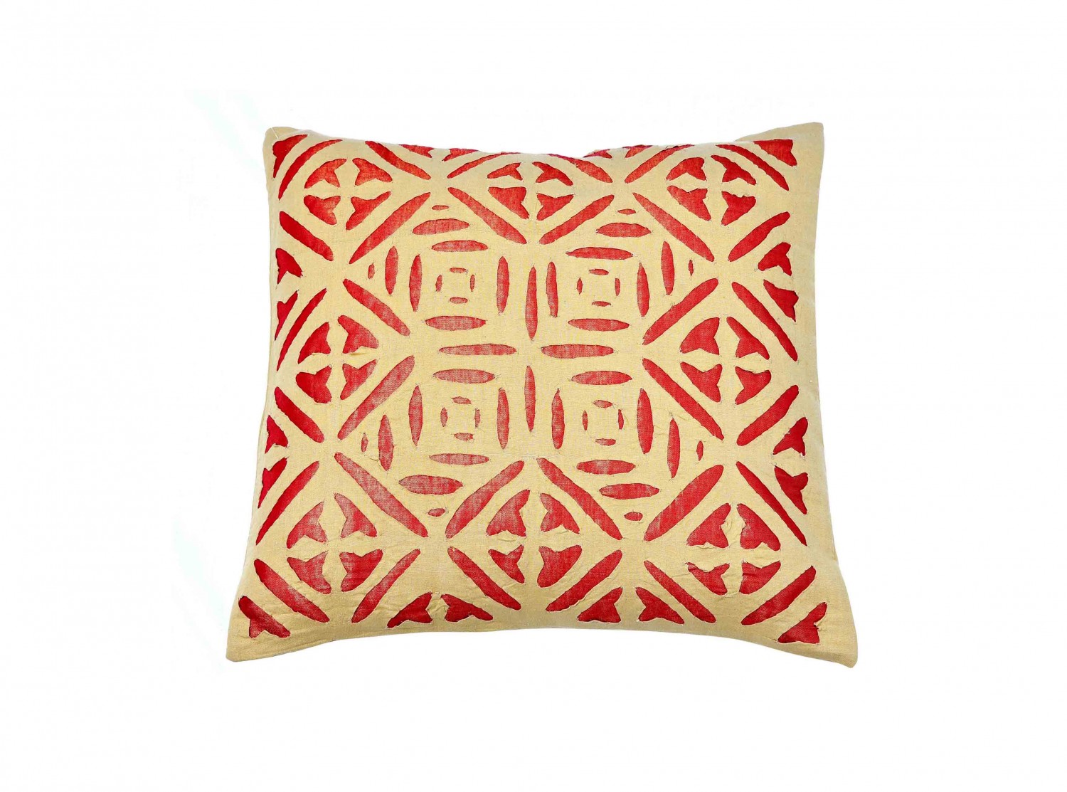 Adorned with cutwork tissue applique work, this cotton cushion cover lends a coveted graphic quality to carefully considered Décor.