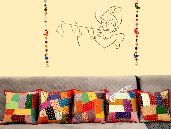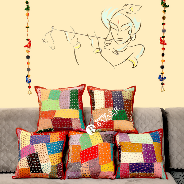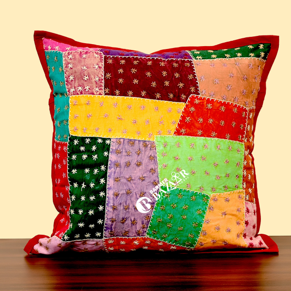 Cut Patch Work Hand Stitched Cushion Cover Without Cushion Filler 16 x 16 (Cotton 01)