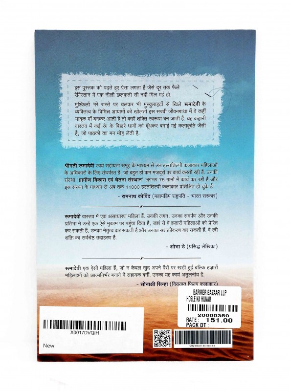 हौसले का हुनर’ is the biography of Rashtrapati Award winner and famous Indian handicraft artisan ruma Devi. She’s also made an appearance on kbc with Amitabh Bachchan. Ruma Devi’s life is full of ups and downs and her inspiring tale, at times, seems more like a legend than truth. Nidhi Jain, the author, captures the essence of this revolutionary woman who has faced the worst that life had to offer and came out as a Victor. She is a unique woman whose hard work, passion, dedication and sheer talent has brought her to a position where she serves as an inspiration to women all around the world. Reading this biography makes you feel as if you’ve stumbled upon a beautiful oasis in the middle of a far-reaching desert. Overcoming many difficulties in life, ruma Devi never failed to keep a smile on her face. This biography explores the many aspects of this amazing woman’s life; her tenderness as a mother and her strength as a woman are both described with sensitivity and grace for the reader pleasure. This book is written in the hopes that ruma Devi’s life will inspire all those who read it and introduce the world to the talent and beauty of the Indian handicraft industry.